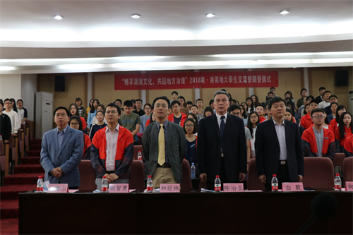 2018年4月2日上午8:30,“畅享湖湘文化 共话地方治理”2018年湘.港两地大学生交流营开营仪式,在校本部升华前楼101报告厅举行。由和经纬副教授、胡智勇博士率队的香港教育大学亚洲与政策研究学系25名师生与中南大学师生齐聚一堂。中南大学党委副书记陈治亚教授,港澳台事务办公室主任白毅、向学勇老师,yl23455永利官网院长左高山、副院长姜国俊等出席开营仪式。仪式由姜国俊副院长主持。