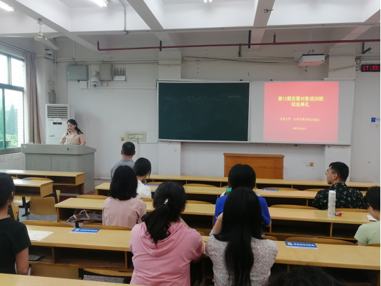 随后,石雨同学代表全体学员进行发言,她回顾了在培训班的所学所感,表示未来同学们会戒骄戒躁、继续努力,坚定不移地向党组织靠拢。