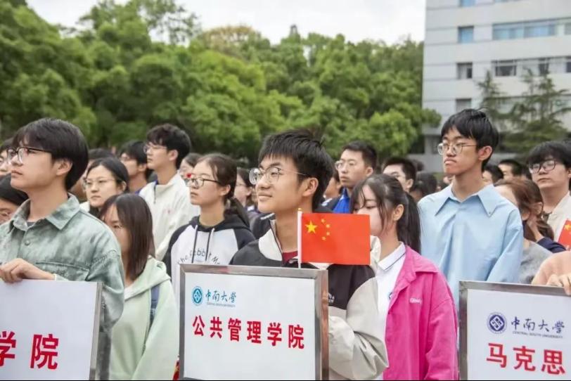 10月1日上午6点40分,我院师生在校本部观云池畔升旗台前参加中南大学“红心向党同贺国庆,砥砺前行共谱华章”国庆升旗仪式,庆祝新中国成立75周年,为伟大祖国送上最真挚的祝福。校领导陈翔、柴立元、彭立威、李景升、付刚华、何军、何旭辉以及2000余名师生代表齐聚一堂,我院党委副书记耿贵斌、本科生辅导员张宇奇与50名学生代表参加此次升旗仪式。
