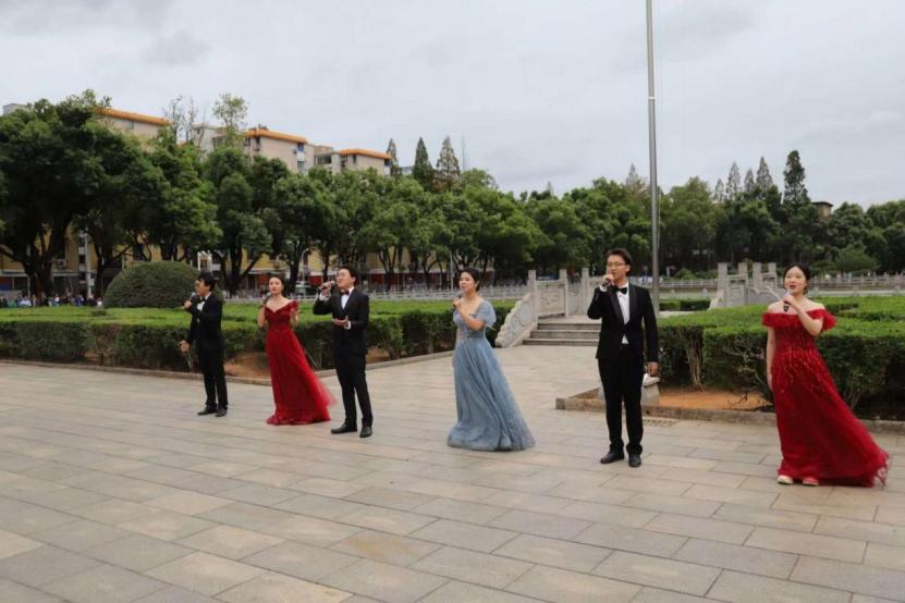 首先,由主持人宣布升旗仪式正式开始,公管院学生代表与各院师生一起为伟大祖国深情献唱歌曲《歌唱祖国》《春风十万里》《共筑中国梦》,用自己的歌声表达对祖国崇高的敬意,诠释了自己对祖国的一片赤忱之心。