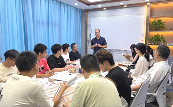 参观结束后,同学们来到一间正在备课的教室里,与公管院2023届毕业生校友王爱营进行了交流互动。王爱营目前作为专职教师就职于雅和学,她的职场经历和成长故事为毕业生同学们提供了宝贵参考。她以亲切的语言讲述自己从校园到职场的转变过程,分享自己在雅和学任职的感受和经历。雅和学胡英杰老师也向同学们介绍了公司的薪资待遇等,表示在雅和学任职不仅能获得相对较高的薪资,更能够获得自我价值的实现,鼓励同学们积极追求内心理想的同时,也要提升自己的专业素养和综合能力。他表示,希望通过与公管院的合作,未来能吸引更多优秀人才加入,共同推动企业创新发展。