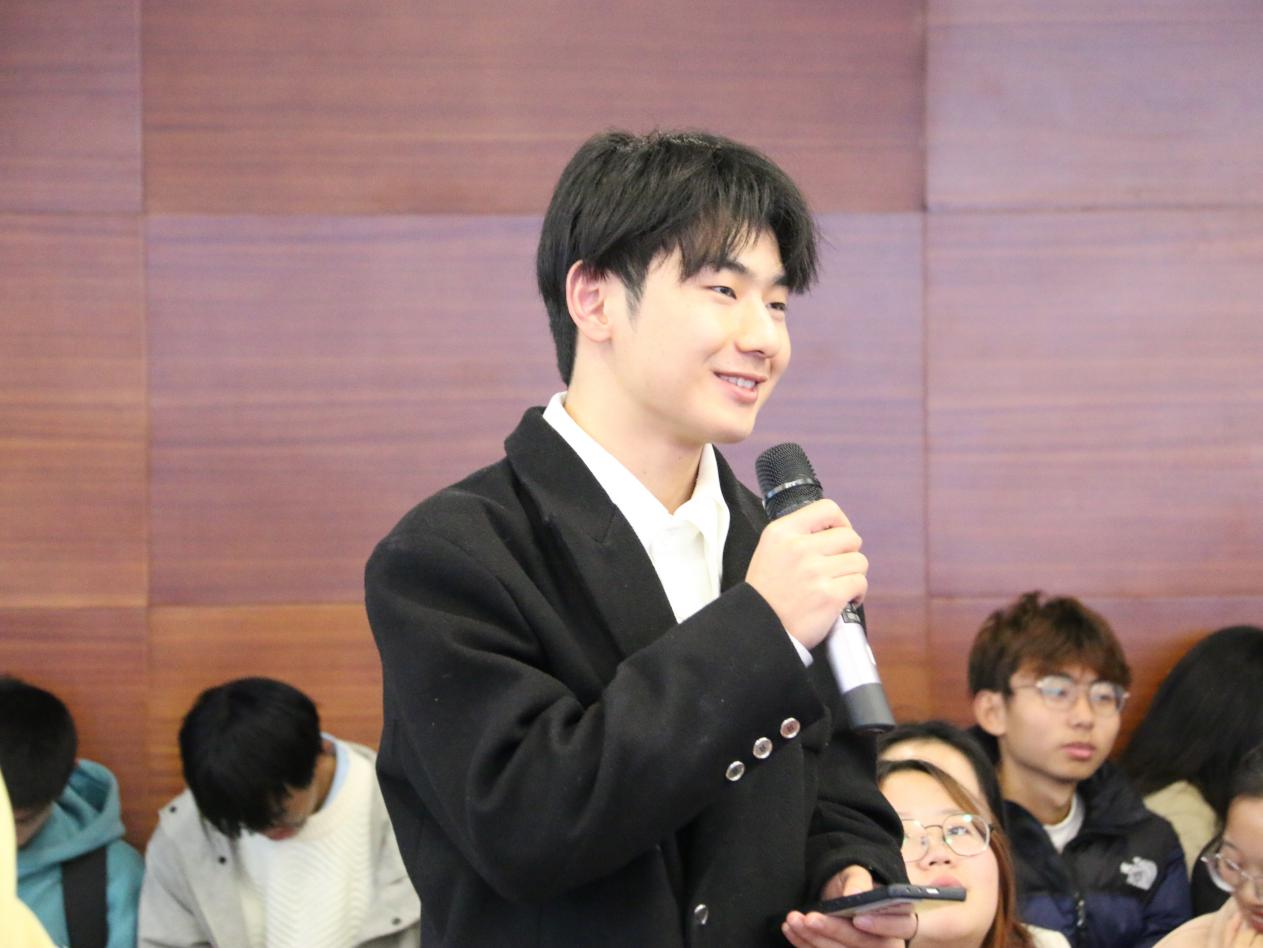 讲述结束后,许源源教授与现场观众亲切互动,就同学们提出的问题做出详细回答。当谈及文科学生困惑于未来道路如何抉择时,他讲到:“无论是考研、考公还是就业,选择适合自己的道路才是最重要的。”并分享了自己过往求学的点点滴滴,勉励在场观众做出选择之后不要犹豫彷徨,要朝着选择的道路勇往直前,总会到达成功的彼岸。