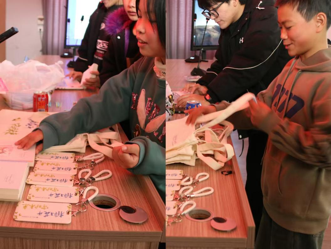 最后进行中学生最喜欢的兑奖环节。中学生们用参与游戏活动获得的积分兑换相关文创产品、小零食。台下的同学们踊跃发言,分享自己对此次活动的感想,整个教室里洋溢着欢乐轻松的氛围,冬季见面交流会至此圆满结束。