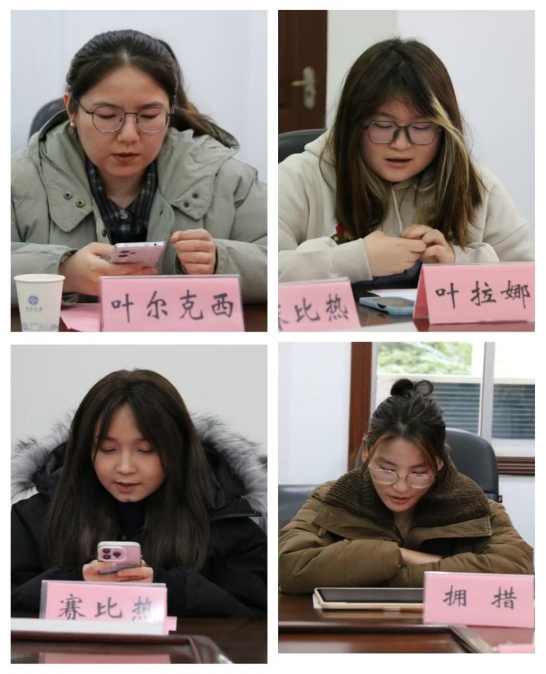 会议伊始,首先由主持人梁慧老师介绍与会的嘉宾老师,随后,少数民族学生依次进行自我介绍,分享自己家乡的独特文化、特色美食、优美风景等。接着,少数民族学生代表叶尔克西、拥措、赛比热、叶拉娜4人依次发言,从专业学习、期末备考、日常生活等方面,结合自身经验向2024级学弟学妹们给出了诚恳的建议,令与会学生受益匪浅。