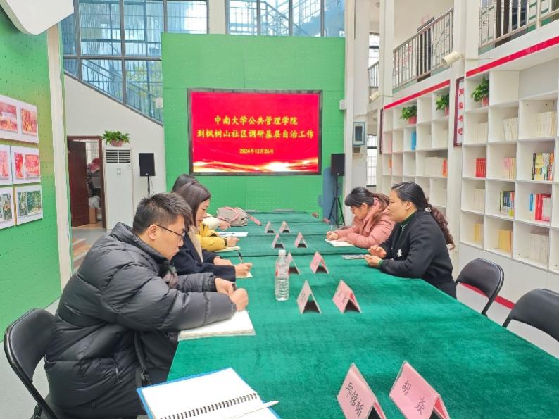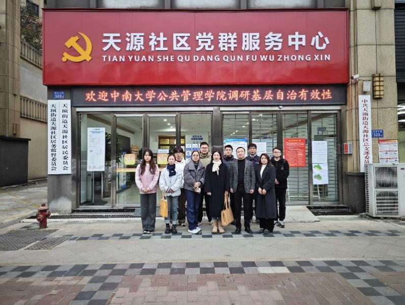 习近平总书记在湖南考察时对基层治理作出明确指示:“健全党组织领导的自治、法治、德治相结合的基层治理体系,坚持和发展新时代‘枫桥经验’”。为深入了解发扬新时代“枫桥经验”、促进基层治理相关议题的实践动向,2024年12月中下旬,yl23455永利官网胡春艳教授带领课题组张莲明、黄小红、邱铭韬3位博士生以及江沛霖、郭嘉明、尹智康、赵慜霄、姜妍煣5位本硕学生先后走访湘潭市雨湖区、长沙市开福区、岳麓区、天心区、雨花区等地的政府部门及基层社区,通过现场参观、专题座谈等方式开展实地调研。