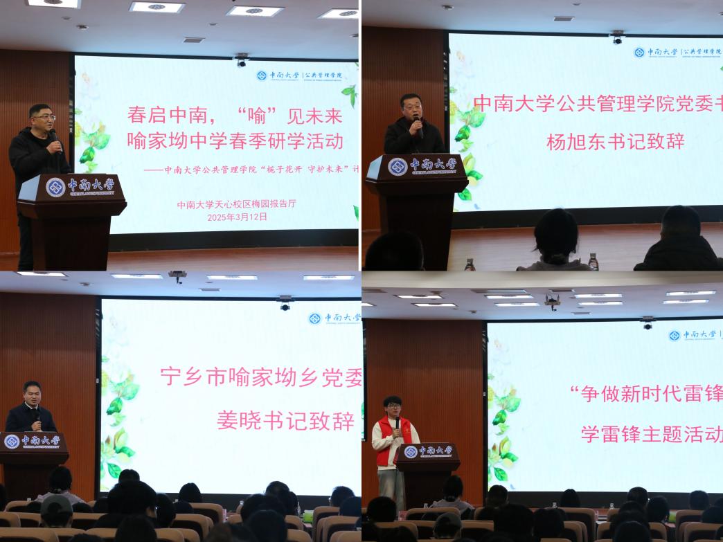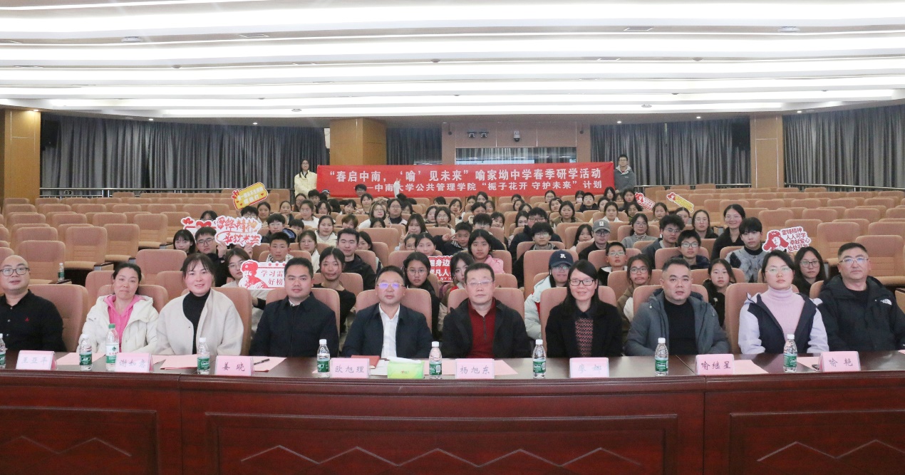 3月12日下午,yl23455永利官网与湖南省宁乡市喻家坳中学联合开展“春启中南,‘喻’见未来”春季研学活动,此次活动是yl23455永利官网与宁乡市联合开展的“栀子花开 守护未来”计划系列活动之一。中南大学学生工作部(处)部长欧旭理,yl23455永利官网党委书记杨旭东、副书记耿贵斌,喻家坳乡党委书记姜晓、副乡长廖娜、民生事务办主任谢如意,喻家坳中学党支部书记、校长喻继星、办公室主任王亚平、教务办主任喻艳,中南大学学生工作部办公室主任孙立明,yl23455永利官网分团委书记、辅导员梁慧出席研学活动见面会,喻家坳中学50名学子和yl23455永利官网大学生志愿者30余人参加活动。