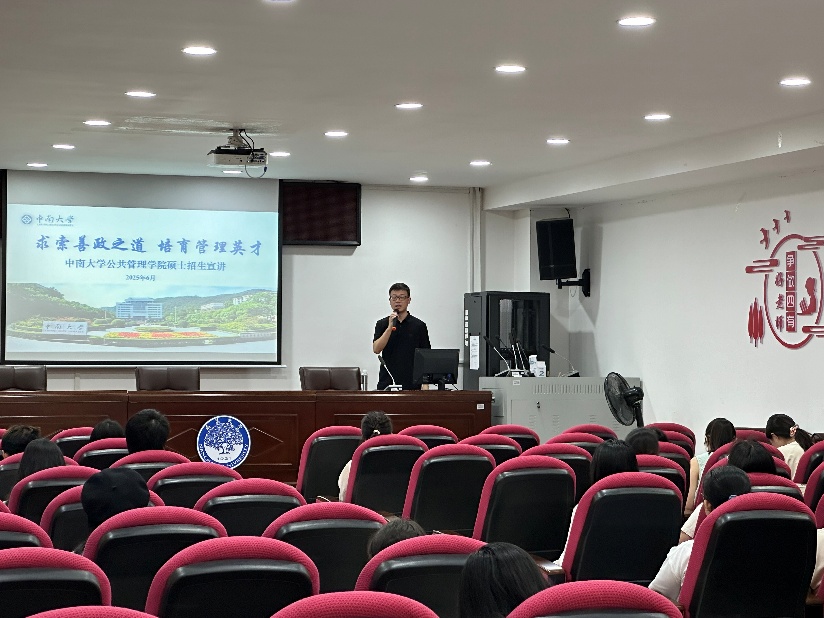 本次宣讲活动由公共管理系主任欧阳万福副教授带队,胡盼老师、林彬老师共同参与。宣讲现场气氛热烈,互动频繁,团队围绕中南大学公共管理学科的发展历程、人才培养体系、科研优势、就业升学成果等方面进行了系统介绍,并通过PPT演示、现场答疑、资料发放等方式,全面展现学院的学术实力与育人理念。