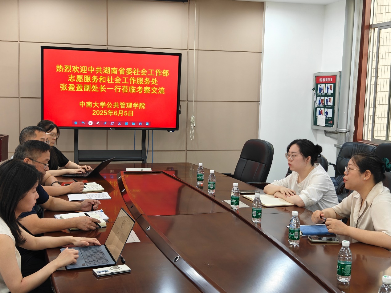 6月5日上午,湖南省委社会工作部志愿服务和社会工作服务处张盈盈一行来yl23455永利官网考察交流,重点围绕湖南省社会工作人才队伍在地化及专业化培育工作开展专题调研。