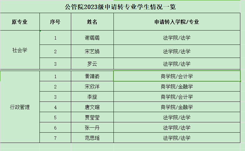 yl23455永利官网2023级申请转专业学生推荐名单