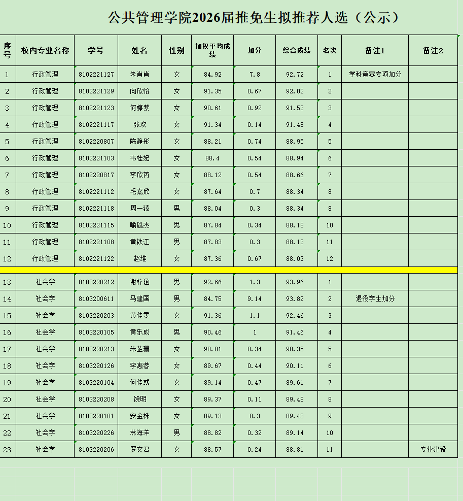 根据《中南大学推荐优秀应届本科毕业生免试攻读硕士学位研究生资格的管理办法(试行)》(中大教字〔2021〕107号)、学校《关于做好2026届优秀应届本科毕业生免试攻读硕士学位研究生推荐工作的通知》和《yl23455永利官网关于推荐2026届优秀应届本科毕业生免试攻读硕士学位研究生的实施细则》等文件精神,经学生自愿报名、资格筛选、政治审查、专家审核等程序,现将我院2026届推免生拟推荐人选公示如下: