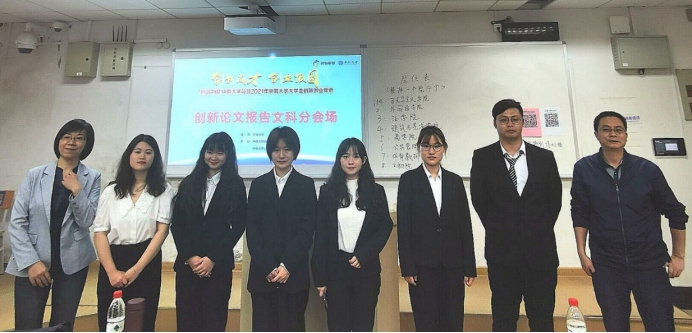在主持人介绍了活动的流程后,论坛正式开始。每组答辩分四个环节,即团队展示、提问、评委老师点评以及选举最佳项目。在文科专场论坛中,共有涉及传统文化、新冠疫情、就业兼职等多领域的7个小组进行展示。各位小组发言人以精心制作的PPT为载体,围绕项目简介、开展过程和研究成果等要点展开陈述。