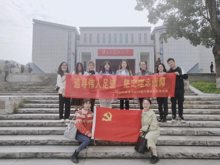 2020年10月31日,为隆重纪念中国共产党成立99周年,深入继续推进“不忘初心、牢记使命”主题教育,我院18级行管研究生党支部在学院党委的指导下,由党支部书记刘芷含老师带队,党员10余人赴湖南浏阳,参观秋收起义文家市会师旧址和胡耀邦故居,开展“追寻伟人足迹、坚定理想信念”主题党日活动。