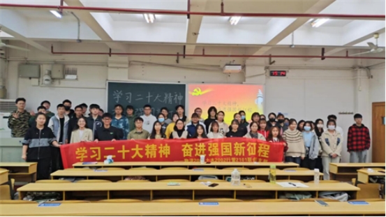 11月13日下午2时,在中南大学铁道学院世纪楼A402教室,物流2001班、土木2002班和行管2101班联合举办以“学习党的二十大精神,奋进强国新征程”为主题的团日活动。此次团日活动以线下形式展开。活动邀请我院行管硕士生第一党支部书记雷望红为主讲人,物流2001班团支书刘羽茜为本次活动主持人。