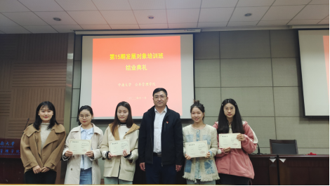 典礼在庄重的国歌声中拉开帷幕。孙炎总结了本次发展对象培训班培训情况,宣布本次培训班37名学员全部通过考核。接着,耿贵斌为学员代表颁发了结业证书。