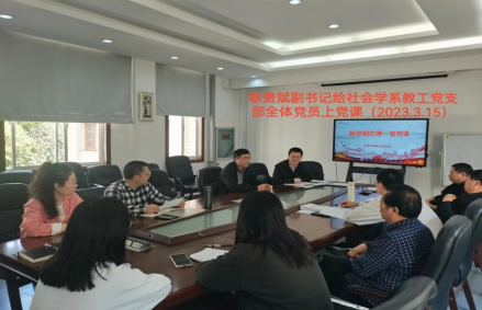 图4 党委耿贵斌给社会学系教工党支部全体党员上党课