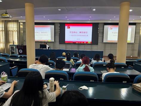 6月7日上午,铁道关工委常务副主任张国强在公管楼404以“不忘初心,踔厉前行”为主题,向各位毕业生党员分享自己在党五十多年的经历感悟与心愿。张国强用生动形象的例子,讲述了他在人生各个阶段上如何在党的引领下坚定理想信念,扎根基层工作岗位,从小事做起,关心身边群众,发挥党员的先锋模范作用,让全体毕业生党员看到了一位老党员、好榜样的坚守与奉献。