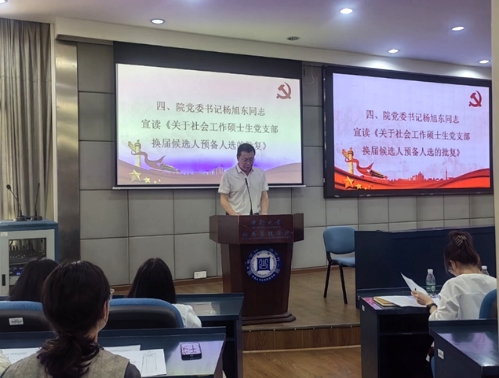 随后,杨旭东书记宣读了院党委《关于社会工作硕士生党支部换届候选人预备人选的批复》,为大会的顺利进行提供了坚实的组织保障。