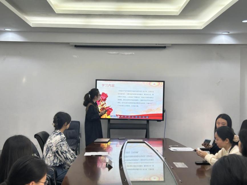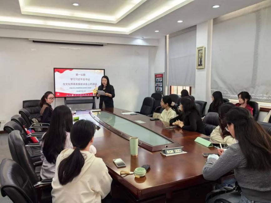 主题党日活动在集中学习中开始,支部书记张晓倩带领全体学生党员集中学习了习近平总书记在文化传承发展座谈会上的讲话。张晓倩老师从她近期对专业领域研究的体悟出发,对习近平总书记的讲话进行了细致解读,不仅剖析了中华文明源远流长、博大精深的特点,还阐述了“两个结合”在新时代文化建设中的实践路径与战略价值。她结合专业知识,引导党员们深刻认识到,作为新时代的共产党人,我们肩负着传承与发展中华优秀传统文化的崇高使命,这是文化自信的具体体现,也是实现中华民族伟大复兴中国梦不可或缺的精神支撑。