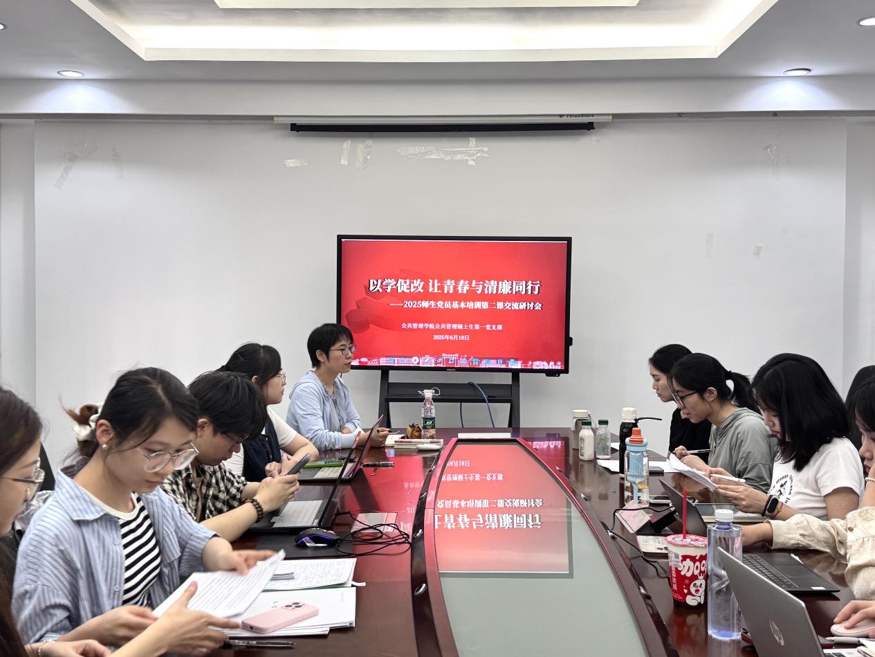 公共管理硕士生第一党支部于6月18日成功召开了一次意义深远的党会,会议围绕“深化作风建设,共筑党性基石”的主题,深入学习了习近平总书记关于加强党的作风建设的重要论述,并对新修订的《党政机关厉行节约反对浪费条例》进行了细致解读。此次党会不仅加深了党员们对党的认识和理解,还见证了新同志的加入和毕业生党员的经验传承,现场气氛热烈而庄重。