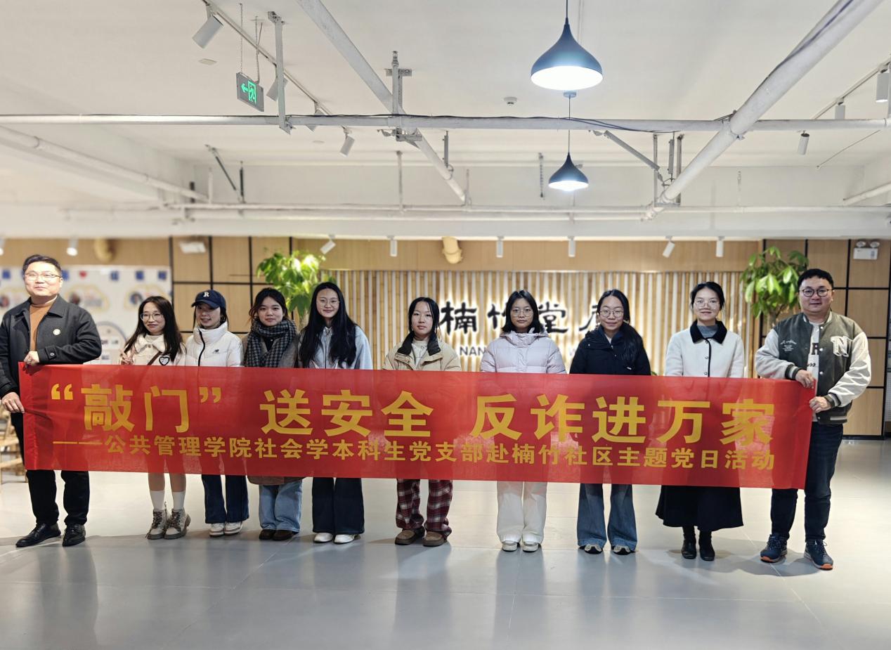 为提升党员服务群众能力,学习基层治理经验,2025年12月16日,yl23455永利官网社会学本科生党支部赴长沙市天心区暮云街道楠竹社区开展“‘敲门’送安全 反诈进万家” 主题党日活动。党支部书记梁慧老师带领本科生党员8人参加,活动分为参观学习和走访宣传两部分。