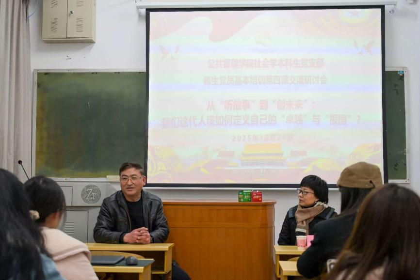 课后,师生党员基本培训第四课交流研讨会随即在世纪楼B401召开。yl23455永利官网党委副书记耿贵斌、铁道校区党工委书记彭满如、社会学本科生党支部书记梁慧出席研讨会,与党员们围绕“从‘听故事’到‘创未来’:我们这代人该如何定义自己的‘卓越’与‘报国’?”主题展开深入研讨。