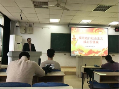 其后,刘迪书记为大家讲授《模范践行社会主义核心价值观》党课,激发了学生们的学习兴趣。这节党课,进一步端正了学员们的入党动机,让学员们树立了坚定的共产主义理想信念,确保了新发展党员的质量,夯实了基层党组织建设工作。
