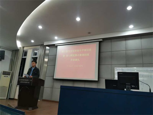 大会正式开始,全体起立,奏唱国歌。礼毕,班导师闵迪说明培训班的注意事项。闵老师强调,各位学员应该珍惜这次党课培训的机会,认真学习党章党史,深入学习习近平新时代中国特色社会主义思想,内化于心,外化于形,不断提升自我的综合能力,争取早日加入中国共产党。随后,积极分子培训班学员何玉萍,发展对象培训班学员赵翔凯作为学员代表,依次发言。
