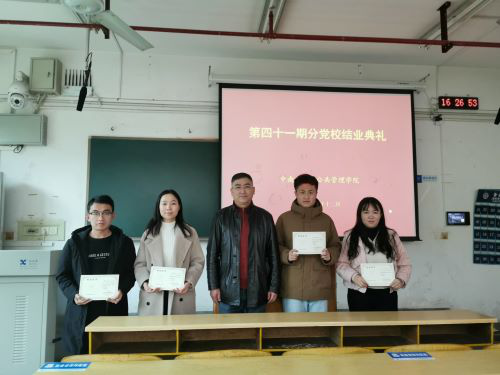 歌毕,闵老师宣布结业情况并对优秀学员标兵、优秀学员进行表彰。第41期积极分子培训班共47名学员,包括本科生24人、研究生23人,47名学员顺利结业。第10期发展对象培训班共34名学员,包括本科生12人,研究生22人,全部顺利结业,培训成果喜人。
