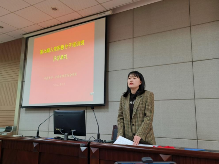 最后,耿贵斌作培训动员讲话。他希望同学们在以后的学习生活中,能够端正入党动机,明确初心使命、坚定理想信念,落实实际行动、坚持思想路线,落实群众路线、持续加强学习,时刻保持自省。作为新时代的接班人,永远热爱党,永远跟党走。
