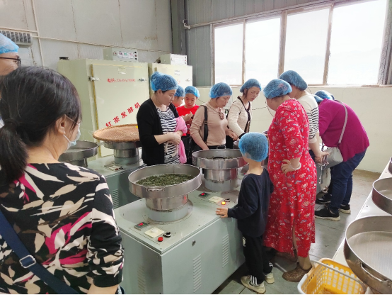 采茶结束后,老师们来到了茶叶工厂开始了第二道工序:制茶。