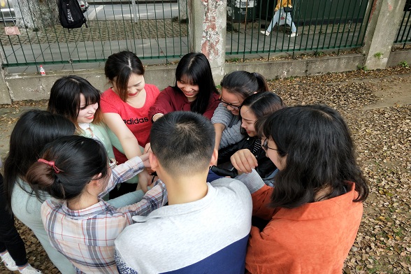 本次活动主要以游戏的形式来展开。首先是破冰游戏,对参与的人员进行分组做自我介绍,让彼此相互熟悉。然后各种游戏如解手链、爱的抱抱、传动作,猜成语、三人两足等活动便有条不紊的进行了。活动通过游戏竞赛来调动同学们的积极性,同时将心理知识融入其中。这些活动有的活跃气氛,锻炼团队的协作能力,使队伍内成员更加熟悉。有的游戏通过锻炼同学们的反应能力,提高队友之间相互的默契度,对增进同学们之间的情感有很大帮助。总之,在全体参与人员的努力下,活动的有序进行使大家受益匪浅,培养了同学们较强的团体意识。最后,参加活动的所有成员都获得了一份绿植作为纪念,希望大家在植物的日常养护中相互沟通交流种植的经验和技巧,进一步加深同学们之间的情感交流。