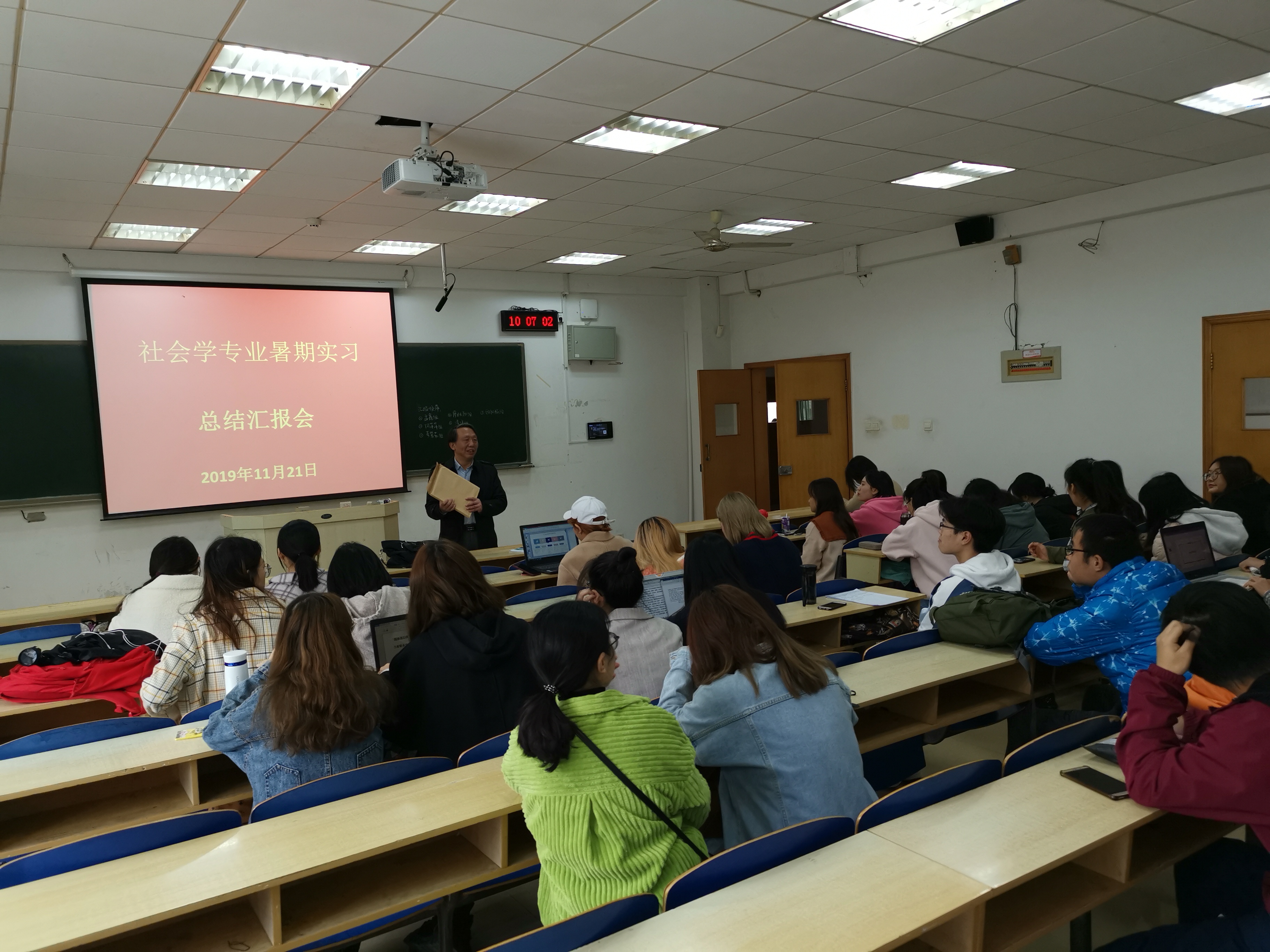 11月21日上午10点,我院社会学专业17级本科生在科教北楼301室,开展了2019年暑期实习总结汇报会。社会1701班、社会1702班两班同学在学院副院长董海军老师、社会学系副主任颜敏老师的组织下,积极进行暑期实习分享交流。