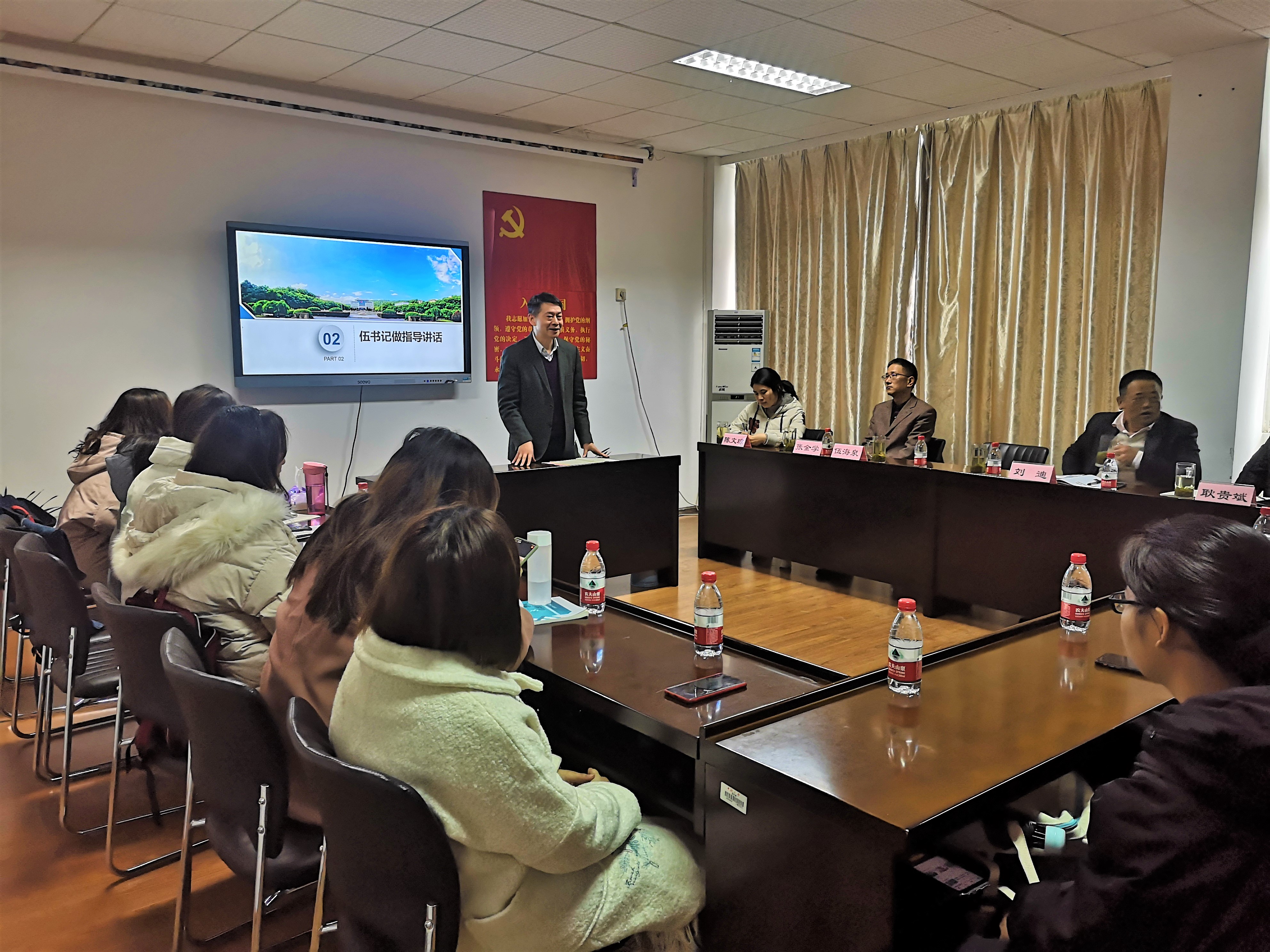 在同学们分组展示调研成果之后,伍书记对同学们的大学生活进行了指导。伍书记表示,参加此次班会令他回忆起了多年前担任班导师时的美好岁月,体会到了作为教育工作者的幸福感和成就感。伍书记认为大学生既要读“有字之书”,也要读“无字之书”。所谓“有字之书”,指学好专业知识,增长才干,实现人生价值。“无字之书”一是指自然,二是指社会,伍书记认为大学生既要亲近自然,感知生活的美好,也要多接触社会,通过实践出真知。最后,伍书记表示会加强与班级同学的联系,乐意为同学们解决困难,也希望同学们能尊师重教,努力学习,收获圆满的大学时光。