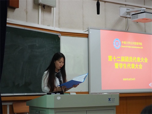 首先,我院第十一届分团委副书记张治卓、学生会副主席赵翔凯分别作分团委、学生会年度工作报告。在去年一年中,我院分团委在思想引领、文化育人、创新创业、网络育人和基层团建等各个方面的工作顺利开展并取得喜人成就, 获得2019年度“五四红旗团委”荣誉称号,在创新创业“升华杯”中获得金奖一项、银奖四项、铜奖三项,我院公管新青年公众号累计阅读量突破九万次;在学生工作方面,我院紧密围绕党中央和学校学院的人才培养方针,积极组织开展学习习近平新时代中国特色社会主义思想、党的十九大精神系列主题教育活动,推出新中国成立70周年、各类专题培训和学风建设等特色活动,获得“优秀学生会”荣誉称号。