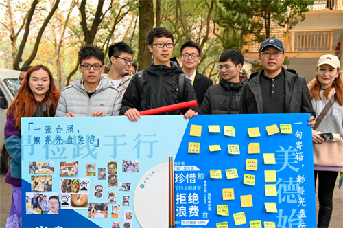 下午3时,三个班级的团支部组织同学们对学校食堂等餐饮场所浪费情况进行实地调研活动,调查周边餐饮场所的浪费情况。通过调查采访,三个班级同学们更好了解到了周边餐饮浪费现状,更加深刻地认识到严格执行“光盘行动”、身体力行地杜绝餐饮浪费现象的重要性。