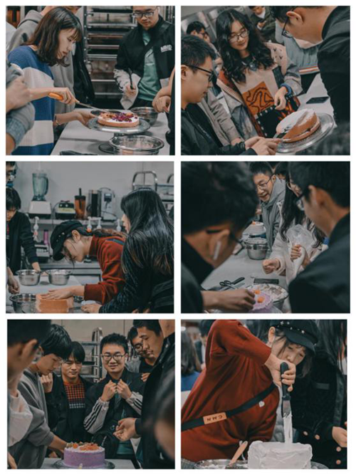 下午5时,三个班级的团支部组织同学们亲手制做蛋糕,感受劳动成果的来之不易。实践出真知,在亲身体验的过程中,同学们对“光盘行动”的必要性有了更深的理解。