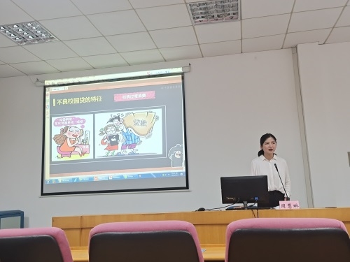 随后,周经理又分别从了解金融、金融陷阱、个人征信和正规机构四个方面向在座的同学们科普了征信的有关知识。周经理从当下互联网征信新模式的大背景下入手,向大家阐释了个人征信的含义、作用和个人征信记录不良的种种后果,进一步增强了同学们的征信意识。周经理以“擦亮眼睛、找准组织、善用法律、理性消费”四个要求向同学们再次强调金融安全的重要性,防范各类金融诈骗,尤其是不良的校园贷款。