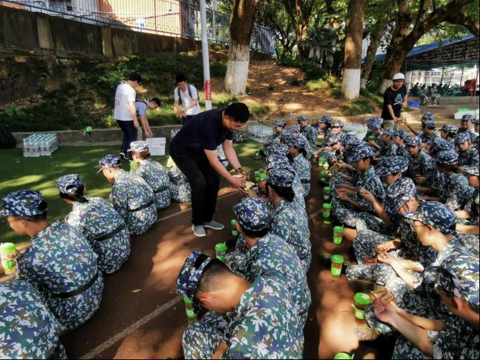 接着,许院长、耿书记和各位班导师,共同为每一位本科新生发放了清凉爽口的柠檬茶和中南大学定制版月饼。临近中秋,月满情更浓,在学院的关怀下,新生们思乡躁动的心得到抚慰,军训的辛苦也消减了大半。