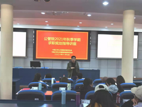 2021年11月7日下午7时,由学院学生会、研究生会联合承办的求职规划指导讲座在学院院楼404顺利开展。中南大学就业指导中心教师李联凯,院研究生辅导员徐立坤、本科生辅导员闵迪出席此次活动。学院各级本科生、研究生参与本次活动。大会由学院学生会成员巢佳主持。