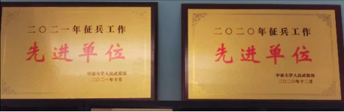 2021年我院有2名学生顺利入伍、6人上站体检、2人退伍,获评中南大学2020-2021学年征兵工作先进单位,为实现强国梦、强军梦贡献了中南管院力量。