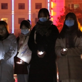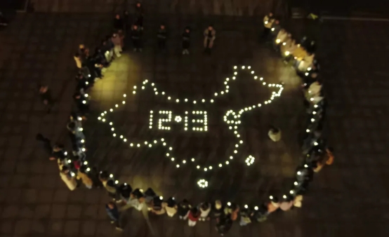 夜幕降临,黑暗中的广场被一片由蜡烛拼成的中国地图与代表国家公祭日时间的数字“12.13”点亮。烛光映照着一张张沉痛的面庞,同学们不畏寒风,手托蜡烛,集体默哀,深痛悼念南京大屠杀中的死难同胞和所有在日本帝国主义侵华战争期间惨遭侵害的死难同胞。