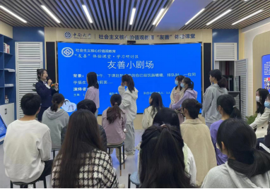 2022年5月20日,我班开展了友善课堂活动。“友善是下雨时陌生人递过来的一把伞”,“是室友帮忙领取的快递”,“是在他人需要帮助时伸出的援手!”……在中南大学毓秀楼友善课堂内,同学们正欢声笑语,热烈讨论。伴随着讲解员姐姐的引导,一堂轻松有趣、别开生面的“友善”体验课正在进行。