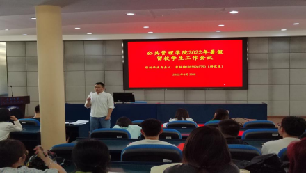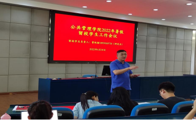 为做好暑期留校学生的管理与服务工作,6月30日上午10点,我院在公管楼404召开了2022年暑假留校学生工作会议。学院党委副书记耿贵斌,学工办主任徐立坤、本科生辅导员梁慧以及全体暑期留校学生参会。会议由梁慧老师主持。