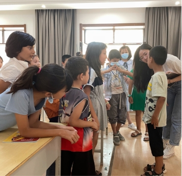 在民俗风情社区,首先,支教成员主要为孩子们科普了宇宙和太阳系,扩充孩子们对宇宙的认知。在和小朋友互动时,一位小朋友对课堂内容十分感兴趣,支教成员课间休息时分充分与其交流后,了解到他的梦想是成为一名宇航员,便纷纷对其表示鼓励与支持。随后,成员们为孩子们进行入门的生物课教学,详细介绍了生物的分类、食物链等小朋友们感兴趣的话题。孩子们在课堂上听得津津有味,争先恐后地回答着老师的提问,教室气氛十分活跃。