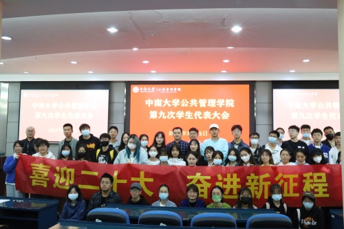 为更好开展学生工作,不断推进学院建设,10月5日下午3时,学院第九次学生代表大会于公管院院楼404室顺利召开。学院学工办主任、研究生辅导员徐立坤出席此次大会,学院57名学生代表参加会议,学院第十四届分团委副书记董馨媛担任大会主持人。