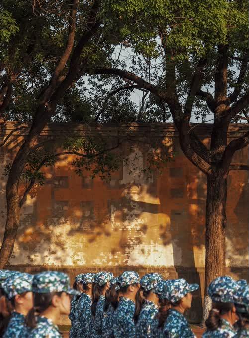 下午,随着温度逐渐升高,太阳亦高悬于蔚蓝的天空。新生们正经受着汗水的洗礼,整齐划一的正步如交响乐团的定音鼓,引领着新生们激昂地奏乐。最初脚步杂乱无章到如今正步行进整齐统一,这样的进步见证了新生们逐渐培养起的集体荣誉感。