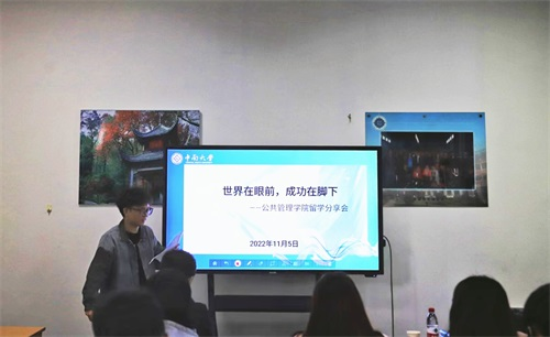 11月5日上午10时,我院于公管院405室举办留学规划专题分享会。中南大学校友、卓引留学创始人李纪勇为分享会受邀主讲嘉宾,本科生辅导员梁慧出席此次会议,数名20级与21级本科生参与其中,分享会由劳保2001班陈凯骐主持。