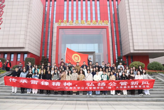 前往湖南雷锋纪念馆实地学习是“锋”火传承主题教育系列的重要活动之一。本次活动主要分为三个部分:第一部分为领誓人公共管理硕士生第一党支部的书记雷望红老师在雷锋塑像广场带领学生党员们重温入党誓词并进行全体合影留念;第二部分为学生骨干们在雷锋生平事迹陈列馆雷锋影院进行观影;第三部分为学生骨干们自行参观学习。
