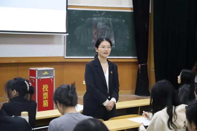 之后,由梁慧老师进行总结发言。梁老师向与会的团员代表说明了团代会代表的神圣使命和光荣职责,希望能代表学院认真履行代表职责。她希望通过在座代表向同学们传达学院学生考勤制度和问题反馈渠道,鼓励大家积极发挥团员代表的作用建言献策,加强本科生和研究生联动,通过各项活动拉近本研距离,共同进步。