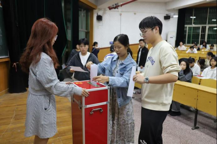 选票清点结束后,总监票人张贤慧同学向大会公布选举结果,王中方、朱肖肖、向艳、张紫睿当选我院正式出席共青团中南大学第五次代表大会的学生代表。大会在洪亮的团歌中闭幕。